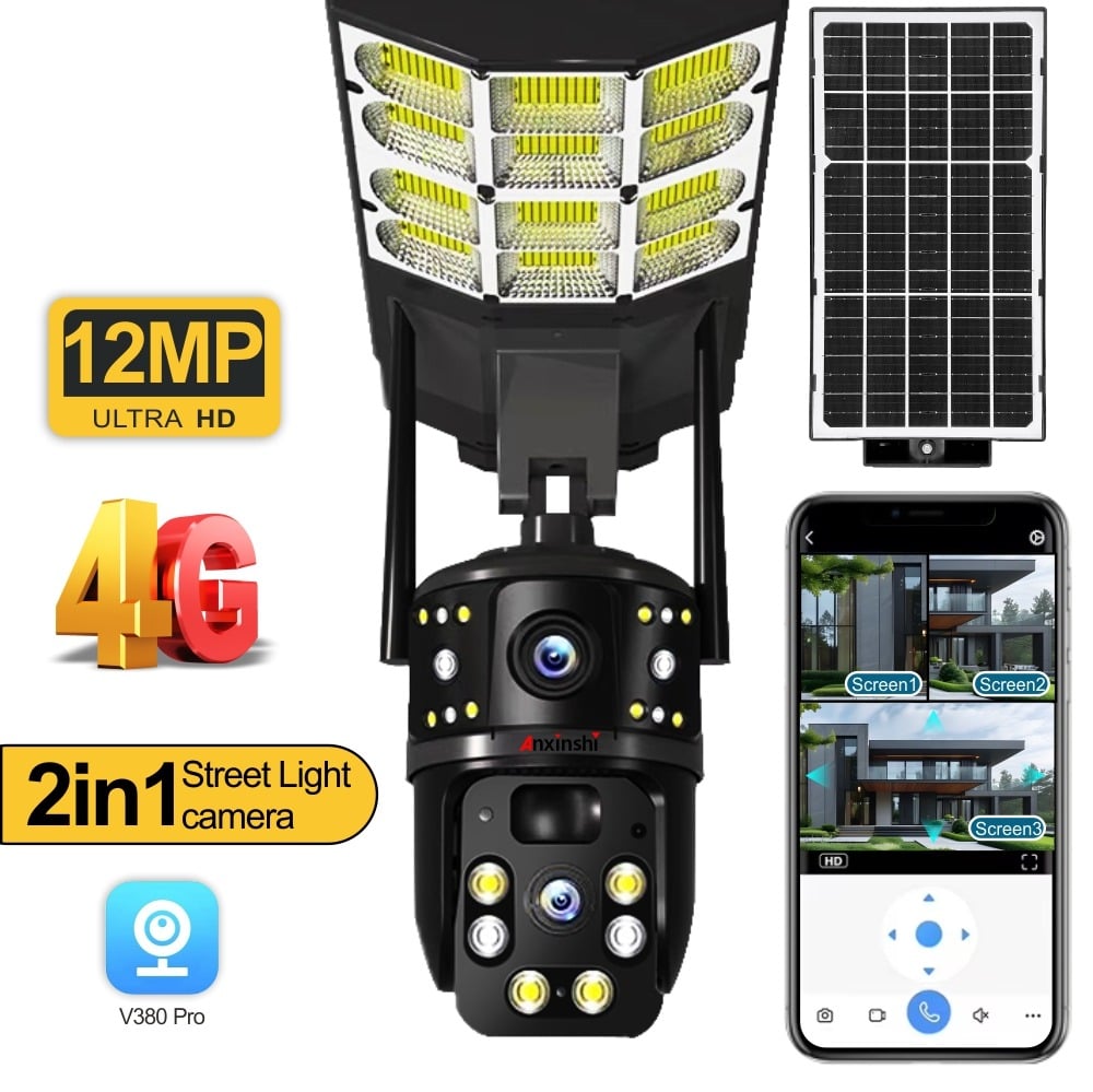 كاميرا مراقبة متحركة مع كشاف شمسية 12 ميجابكسل بشريحة